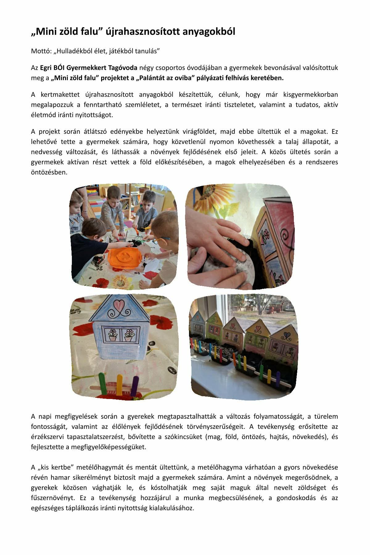 „Mini zöld falu újrahasznosított anyagokból”